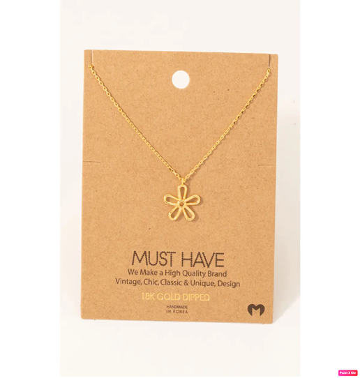 Add a touch of effortless charm with this delicate Wire Flower Pendant Necklace, available in both 18K gold-dipped and rhodium-plated finishes. Featuring a minimalist open-petal flower design, this necklace brings the perfect mix of feminine, modern, and timeless style.
