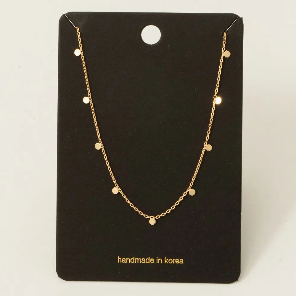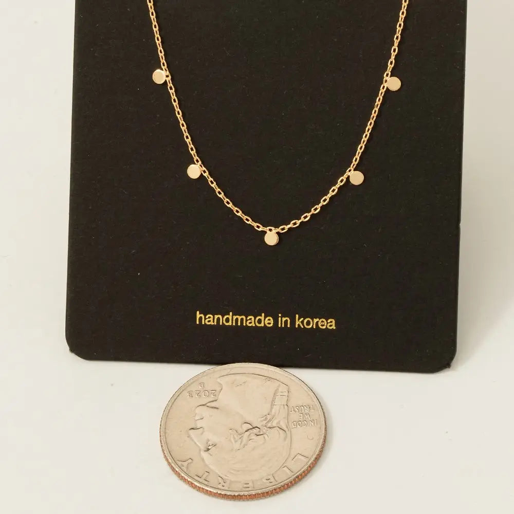 This dainty coin charm necklace is the perfect everyday accessory. Designed with a delicate chain and subtle disc charms, it adds just the right amount of shine without overpowering your look. Lightweight and timeless, this piece is ideal for layering or wearing solo for effortless elegance.