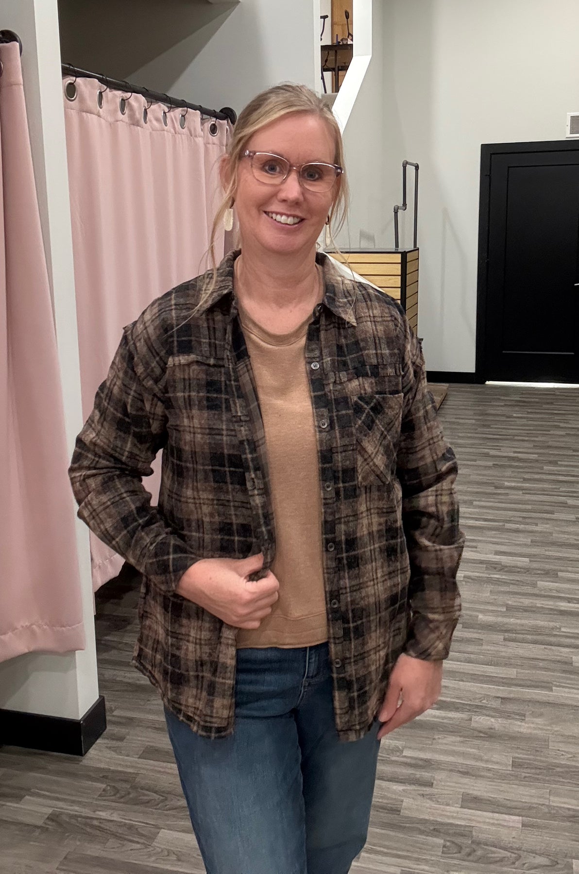 This oversized plaid flannel shirt is a fall layering essential with a touch of edge. Designed with a classic point collar and button-front closure, it keeps the timeless flannel look you love while adding modern updates like the raw-edge fringe detail along the hemline for a distressed finish.